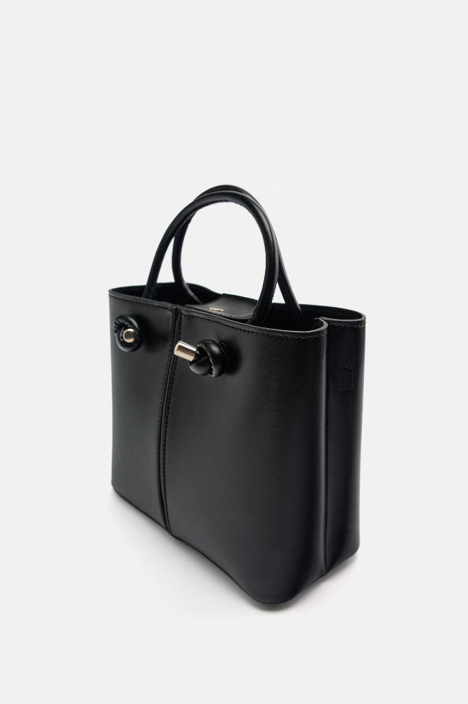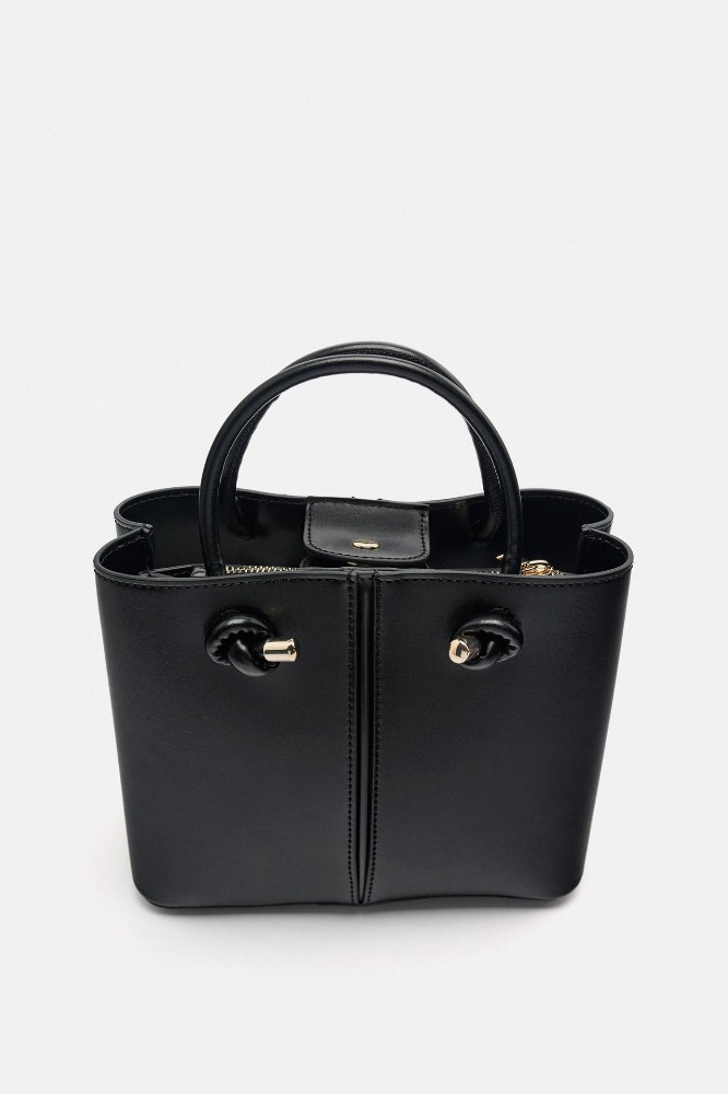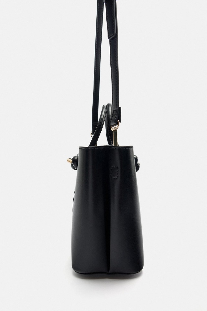 Bolso formato mini city con interior dividido en dos compartimentos. Bolsillo interior con cierre mediante cremallera. Asas de mano tubulares y asa función bandolera ajustable y extraíble. Cierre mediante imán.